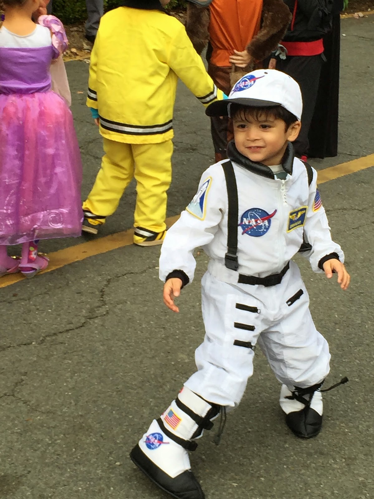 K was super excited to dress up this morning in his astronaut costume (please pay special attention to the gravity boots!) and join his school parade!