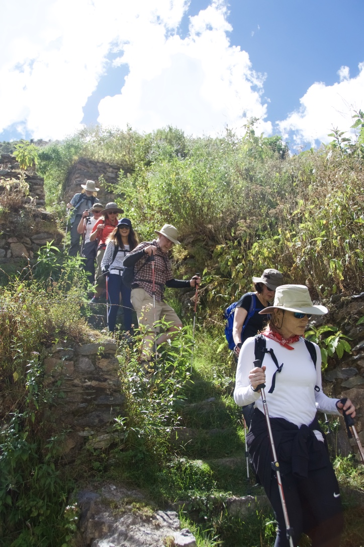 Ollantaytambo. The hike was steep and intense, including some high steps (300 in number) to climb up and 700 tiny, narrow steps to climb down. Our leaders said this was a test run for Inca Trail the following day.